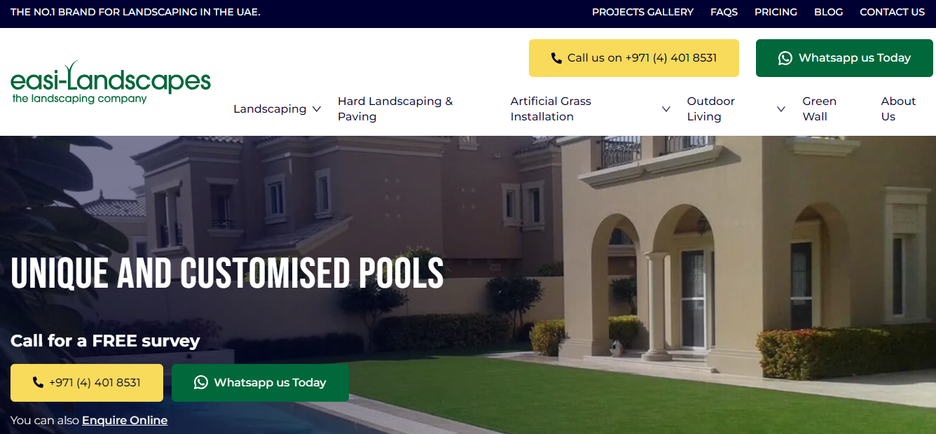 Ready to turn your outdoor space into a haven of luxury? Easi Landscapes invites you to explore the possibilities of our pool installations in Dubai. Our website is your gateway to discovering our portfolio of awe-inspiring projects. Click here to visit us and learn more about how we can transform your swimming pool ideas into reality.