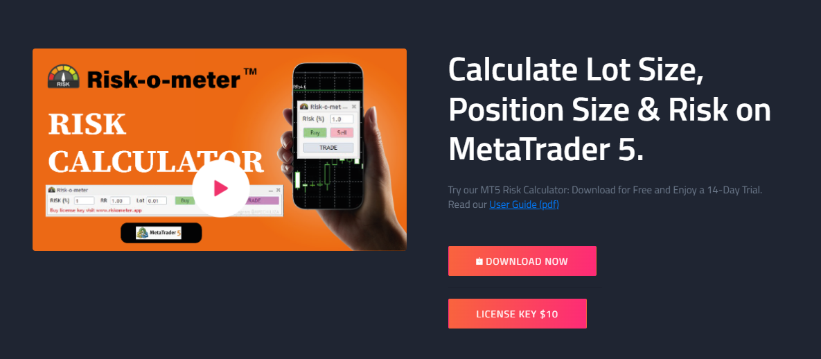 At the heart of this cutting-edge platform lies a robust risk calculator, a position size calculator, and a lot size calculator for MetaTrader 5. The Risk-o-Meter app empowers traders to make informed decisions by providing accurate risk assessments, ensuring that every move aligns with their risk tolerance.