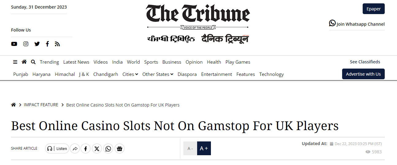 The Tribune India recognizes the growing interest in online slots among UK players. With slots sites not on gamstop, online slots not on Gamstop, and slots sites not on Gamstop, we uncover the top destinations for those seeking uninterrupted gaming experiences.