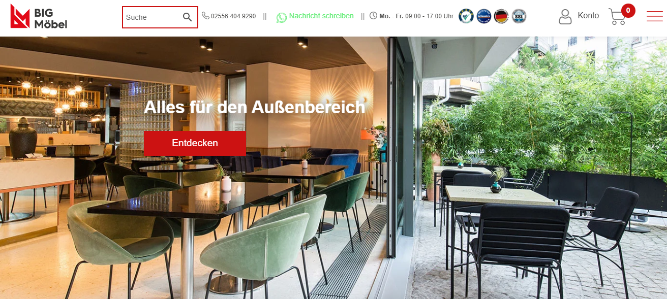 As a leader in quality and design, BIG Möbel raises the bar for exceptional service. Your satisfaction is our priority, from the moment you place an order to the safe and timely delivery to your doorstep. Our secure payment process ensures your peace of mind, while our professional team handles the logistics with care and precision.