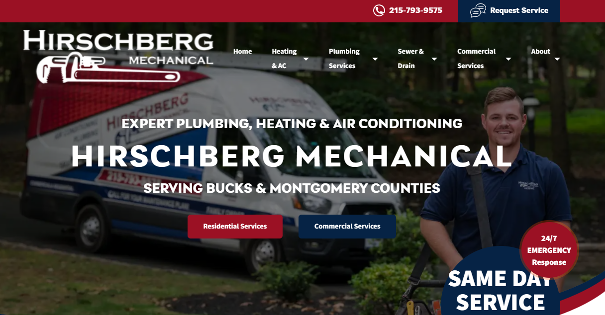 Ready to experience unparalleled HVAC and plumbing services? Reach out to us at 215-793-9575 or drop us an email at Service@hirschbergmechanical.com. Our team is eager to assist you with prompt and reliable solutions that ensure your comfort and peace of mind.