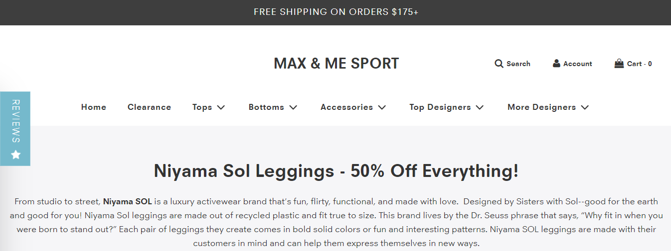 Discover a treasure trove of Niyama Sol leggings on sale at Max and Me Sport. Get 20% off your first order and embrace the perfect blend of style, sustainability, and functionality. With several hard-to-find designs in stock and fast shipping, it's time to upgrade your activewear collection.