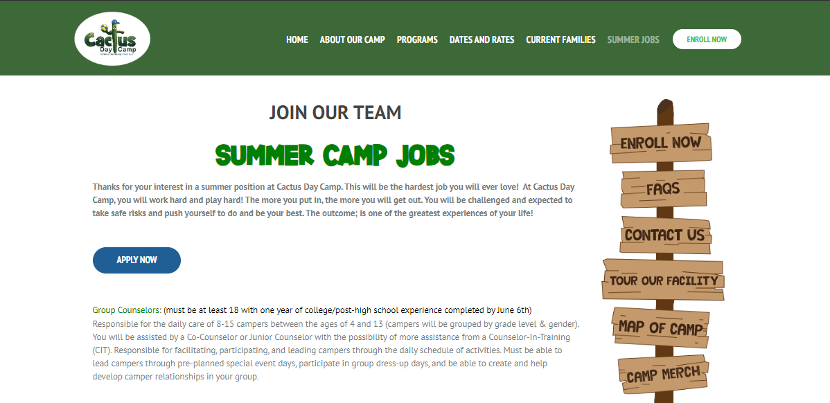 Ready to dive into the adventure? Simply click here to explore all the available positions and start your journey with Cactus Day Camp.