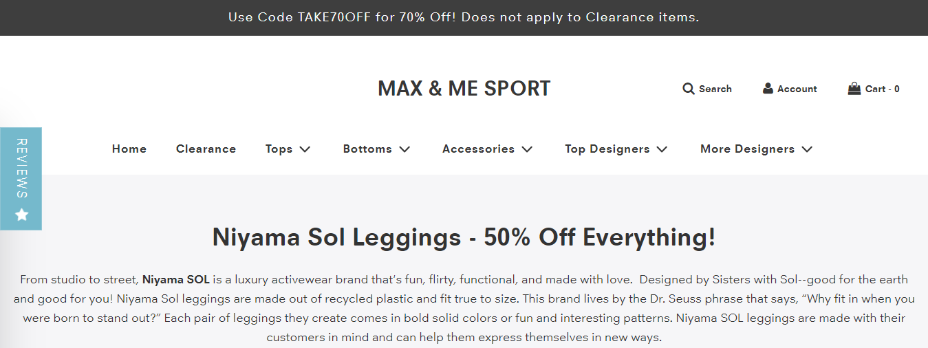 Discover a treasure trove of Niyama Sol leggings on sale at Max and Me Sport. Get 20% off your first order and embrace the perfect blend of style, sustainability, and functionality. With several hard-to-find designs in stock and fast shipping, it's time to upgrade your activewear collection.