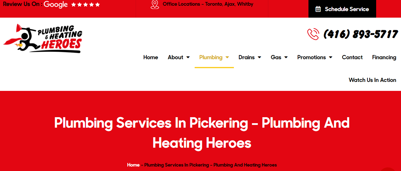 For stress-free emergency plumbing services in pickering, call us at 416-893-5717. Plumbing & Heating Heroes are your proficient and local plumbers in Pickering, available 24/7.