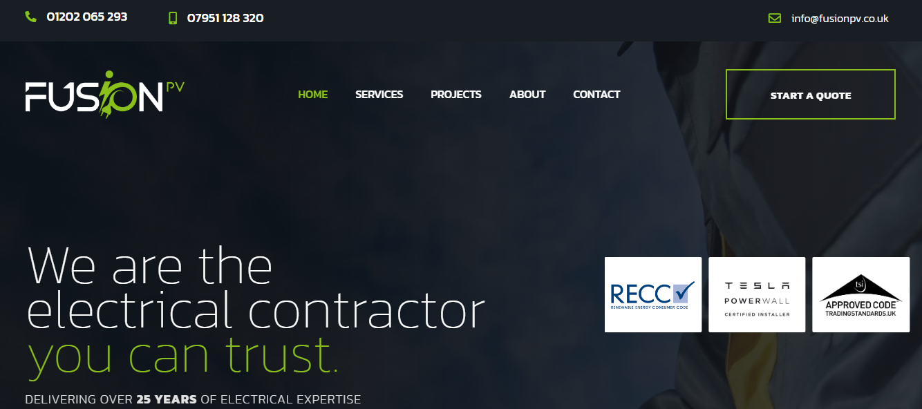 As a local company with over 25 years of experience, Fusion PV has established itself as a trusted name in the field of electrical contracting. Our team of highly qualified and experienced electricians specializes in a range of services, including battery storage, EV charging installations, and solar PV systems. Whether you're embarking on a residential project or managing a commercial development, we have the expertise to meet your needs.
