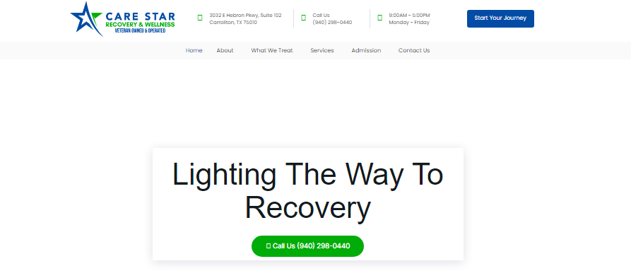 Ready to take the first step on your journey to wellness? Contact Care Star Recovery & Wellness Center in North Dallas, TX, at (940) 298-0440 or email info@carestarbhs.com. Visit our website to learn more about our services and explore how we can help you light the way to recovery.