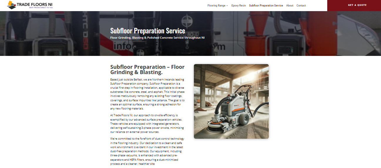 In the intricate dance of flooring installation, the often-overlooked star of the show is subfloor preparation. Nestled just beyond Belfast, Trade Floors NI emerges as the leading luminary in Northern Ireland's subfloor preparation arena. With an arsenal of techniques including floor grinding, blasting, and polishing concrete, they orchestrate the symphony of surface perfection, laying the groundwork for flawless flooring.